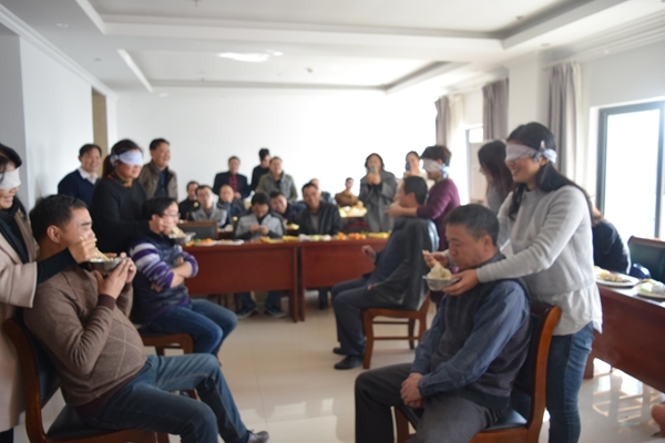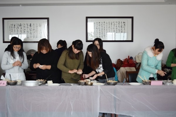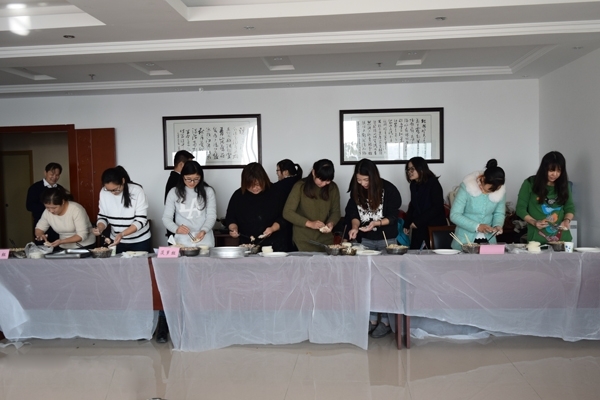 早上9点全体员工早早地开始了活动准备工作,大家一起动手,有的洗菜、有的切菜、有的拌馅,有的布置场地,忙得不亦乐乎,好像一家人一样其乐融融。一切准备就绪后活动就正式开始了。