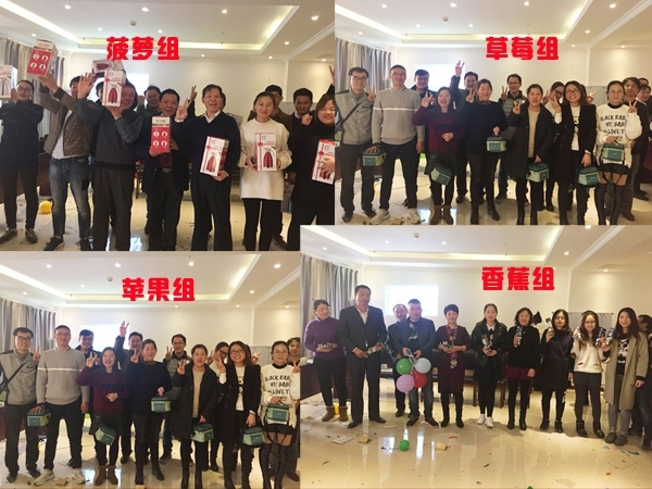 愉快地吃完午餐之后,有趣的游戏还在进行中,脑筋急转弯、猜歌名、夹弹珠、踩气球、顶橘子、抢板凳。。。。一大波好玩的游戏仿佛瞬间带领大家回到了难忘的童年时光。经过激烈的比赛,最终,菠萝组以绝对的优势赢得了冠军,笑到了最后。草莓组与苹果组紧跟其后分别获得第二名与第三名的好成绩。香蕉组作为最后一名被大家惩罚表演了集体钢管舞,彻底点燃了现场的气氛…大家笑成一团。