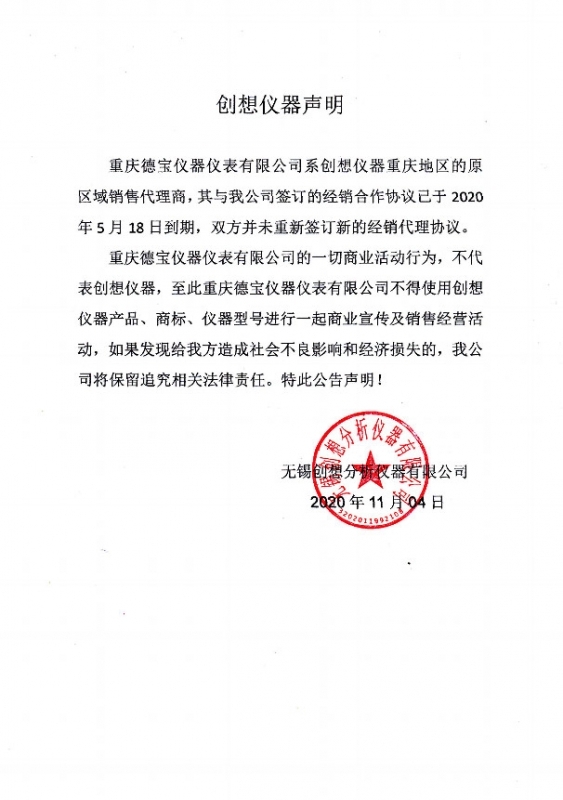 JIANGNAN.COM江南仪器声明与重庆经销商代理协议已到期