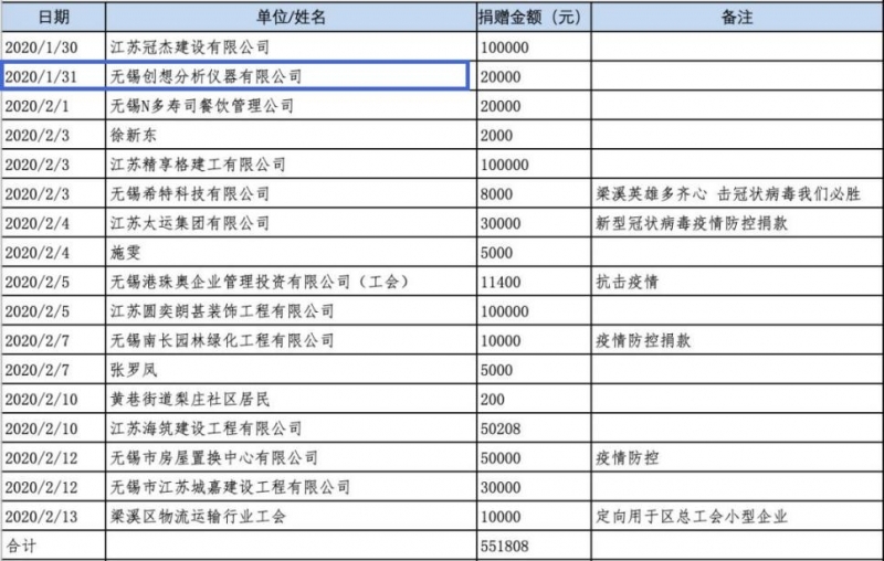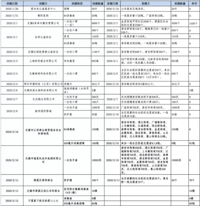 无锡市梁溪慈善总会梁溪分会、爱心慈善基金会本着公开、透明的原则,将捐赠及使用情况想社会公示: