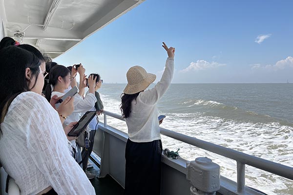 在清晨七点半的晨光中,满载欢声笑语的大巴,如同一艘陆地航船,载着我们驶向那片心心念念的蔚蓝。一路上的谈天说地,让四个小时的车程变得轻快。当咸腥的海风透过车窗拂面而来,我们便知,目的地近了。沈家湾码头人头攒动,我们的兴奋之情也随着海浪轻轻荡漾。登上游轮,劈波斩浪,船舱内是同事们不绝于耳的惊叹与快门声。那一刻,所有工作的疲惫仿佛都被海风吹散,抛在了身后。
